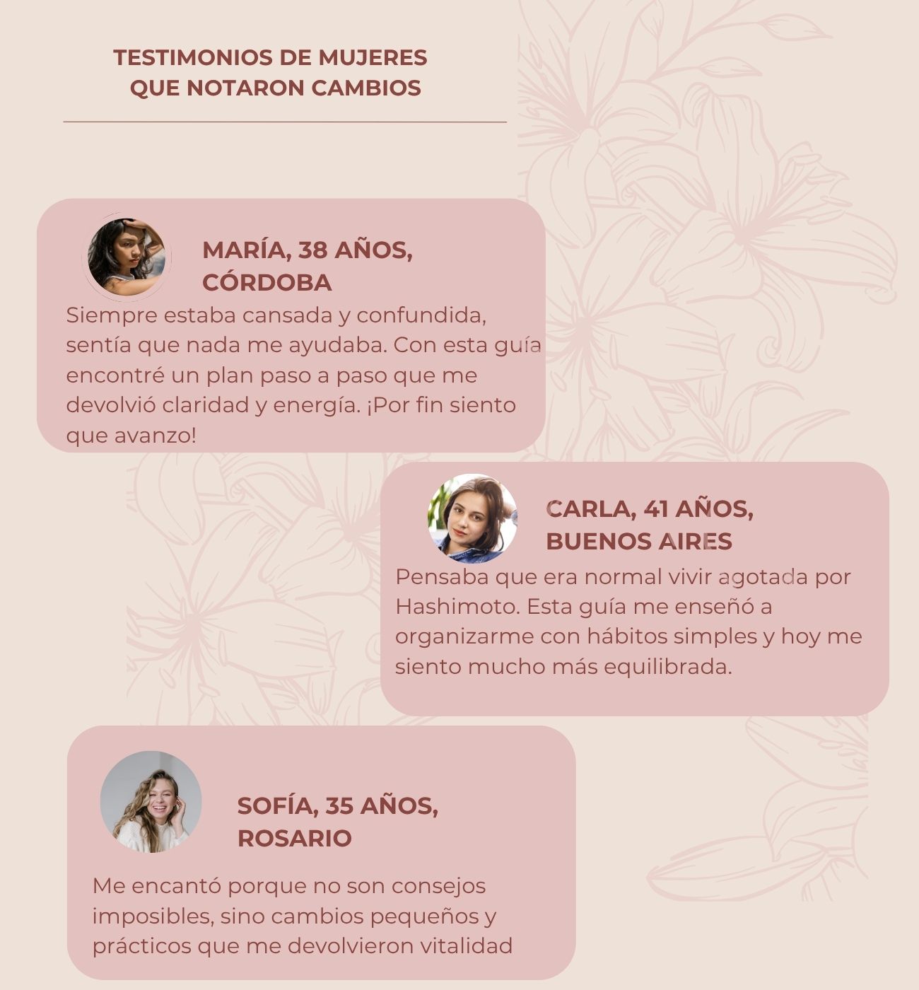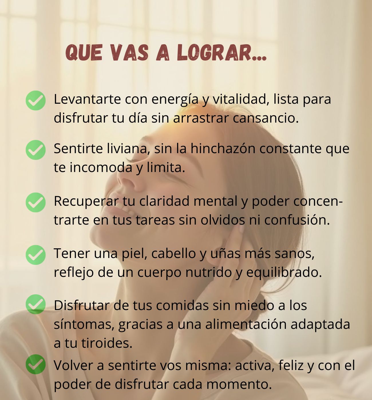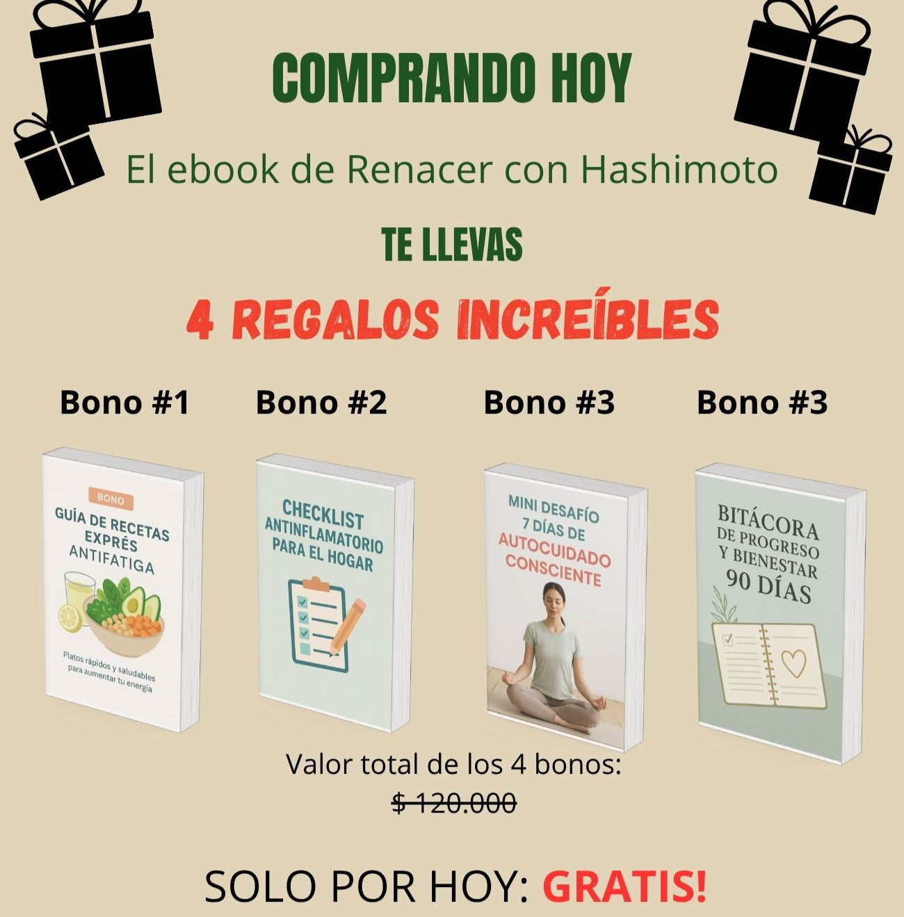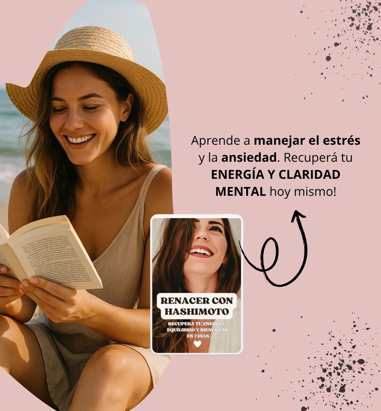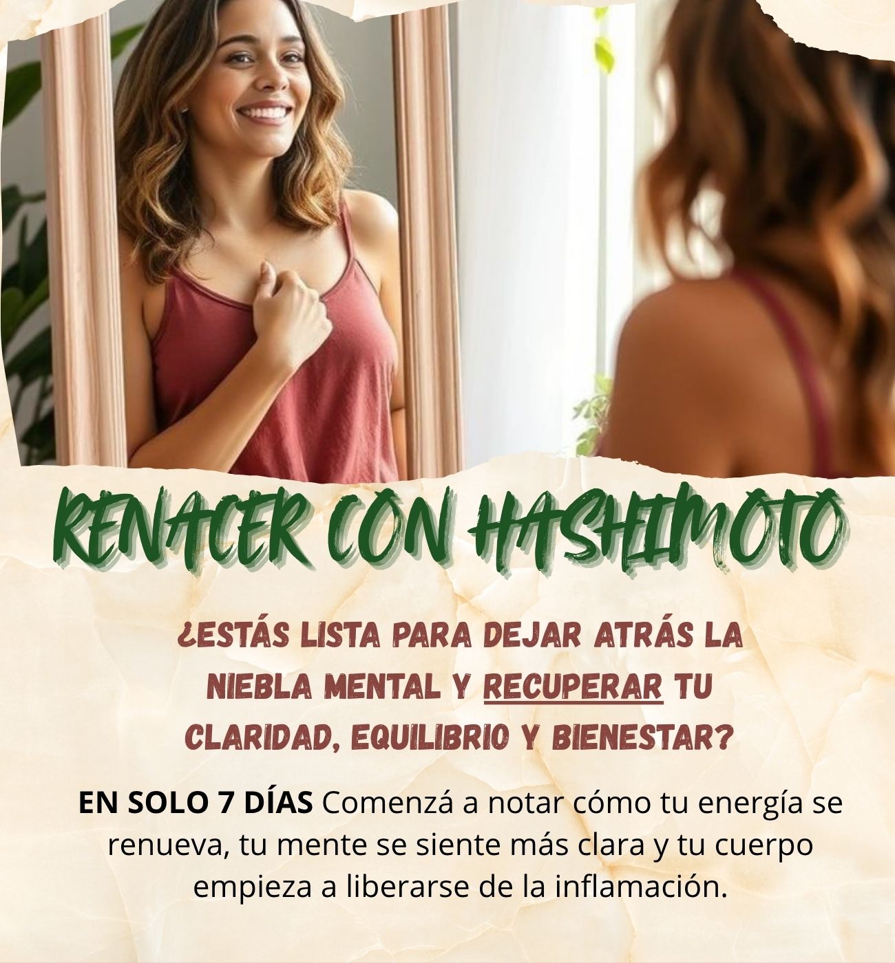 "Renacer con Hashimoto" es una guía práctica y respaldada por expertos que te ayudará a recuperar tu energía, equilibrio y bienestar en solo 7 días. Este método está diseñado para que vuelvas a sentirte plena, vital y en control de tu salud tiroidea.